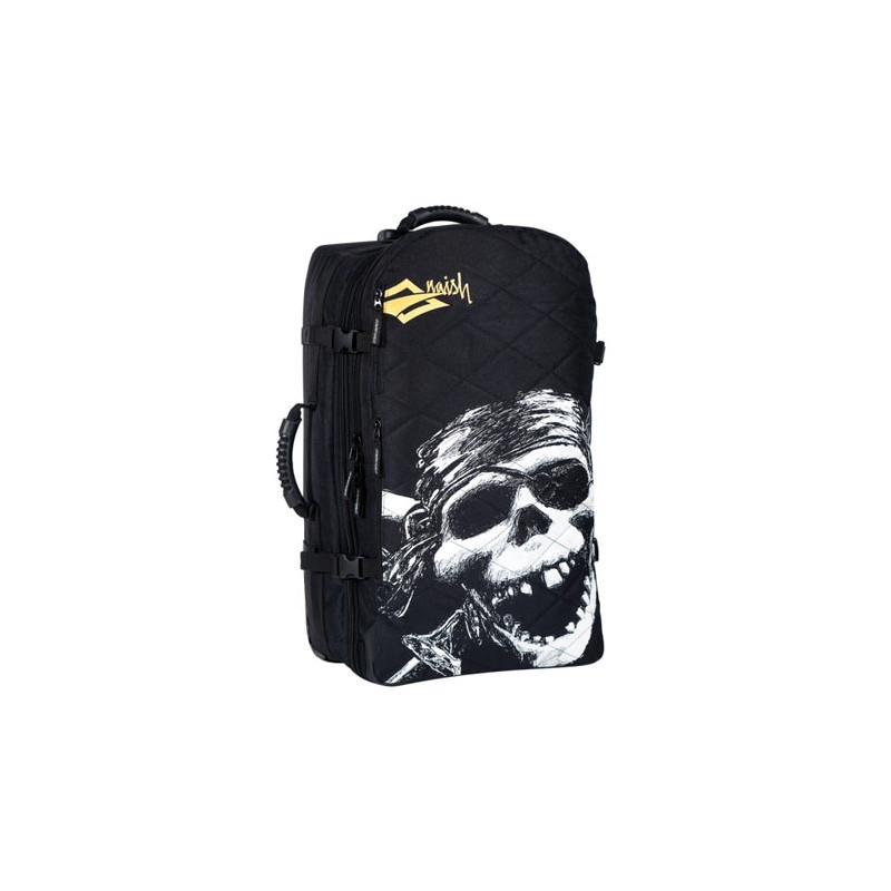- Volume 47 L- Extra light design- Durable wheels- Backpack convertible with hidden straps- Anatomical cushions on thge back- Extra strong handles- Naish's iconic Skull print for extra style