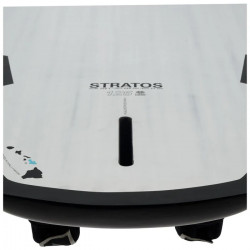 This new generation of shape features significantly improved control at speed and through chop, resulting in a incredibly easy to handle board that lets the rider excel. The new Stratos boards ride smooth and fast. They jibe and carve without effort and mimic the feeling of a much smaller board while offering the stability needed to be comfortable at any level. Early planing, speed and control are the essentials of any free ride board and the Stratos line fits those characteristics perfectly. The rocker line accommodates a smooth but swift transition from non planing to planing with little effort. The V-bottom shape makes it easy to ride flat while offering enough release to power up and shift to a more supportive riding style over the fin. Its various foot strap insert positions provide the option to ride in 5th gear out on the rail or further inboard in a more relaxed cruising mode.